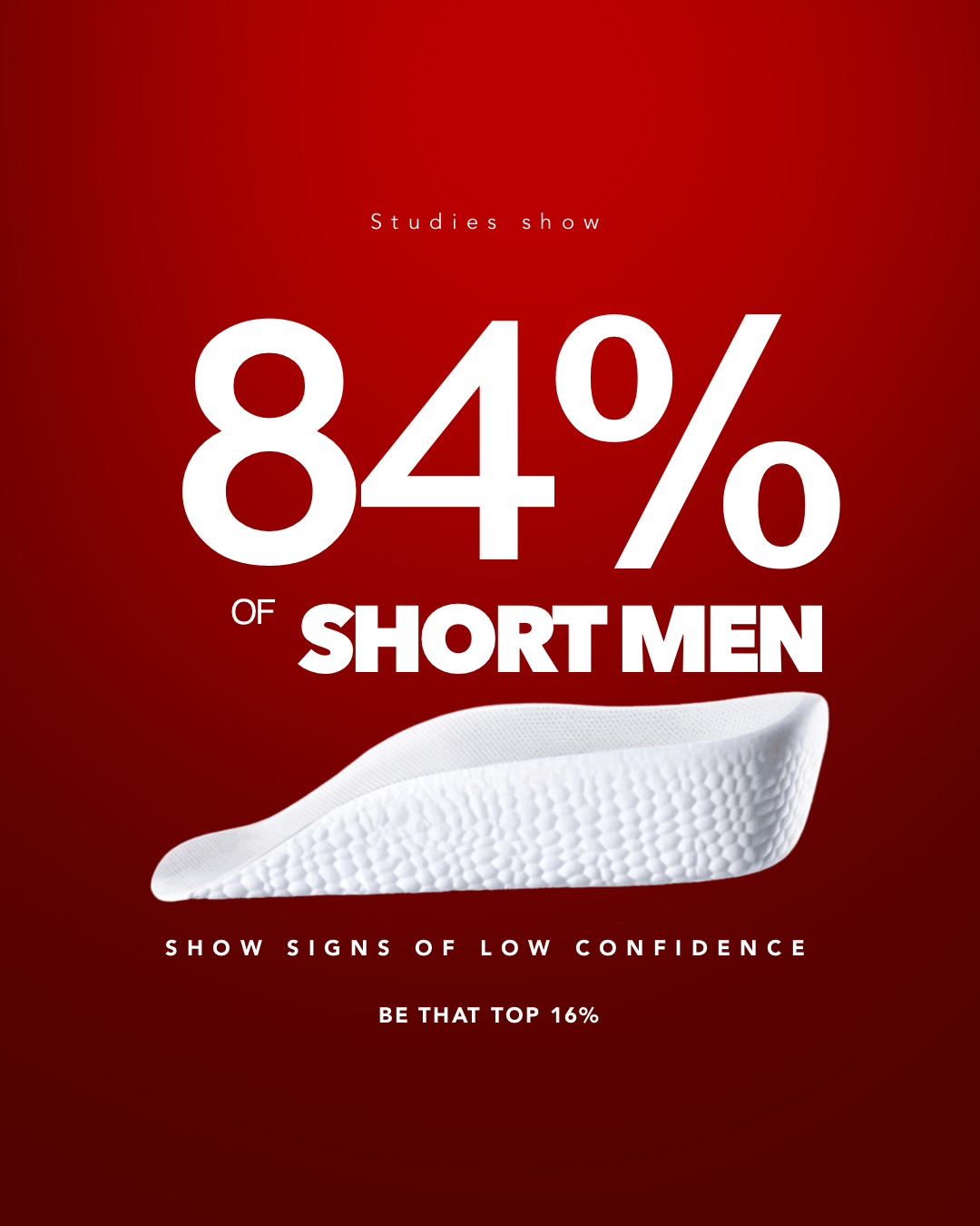 Many people struggle with confidence because of their height, and no you are not alone. 84% of men fee this way. Our goal is to take you up to the 16% that feel good and confident in their every day.